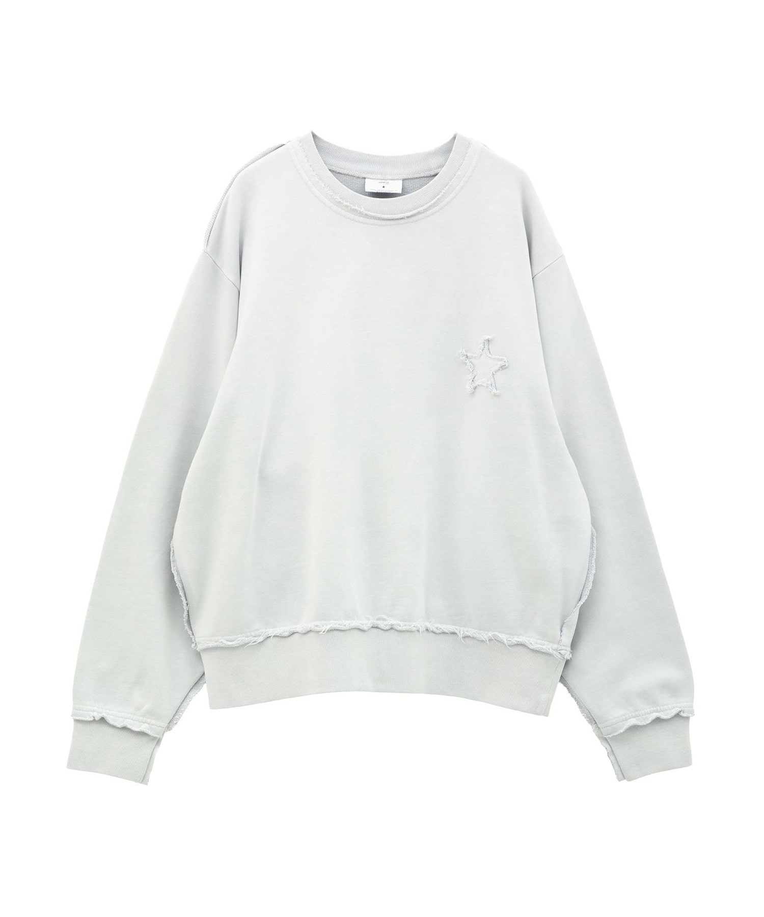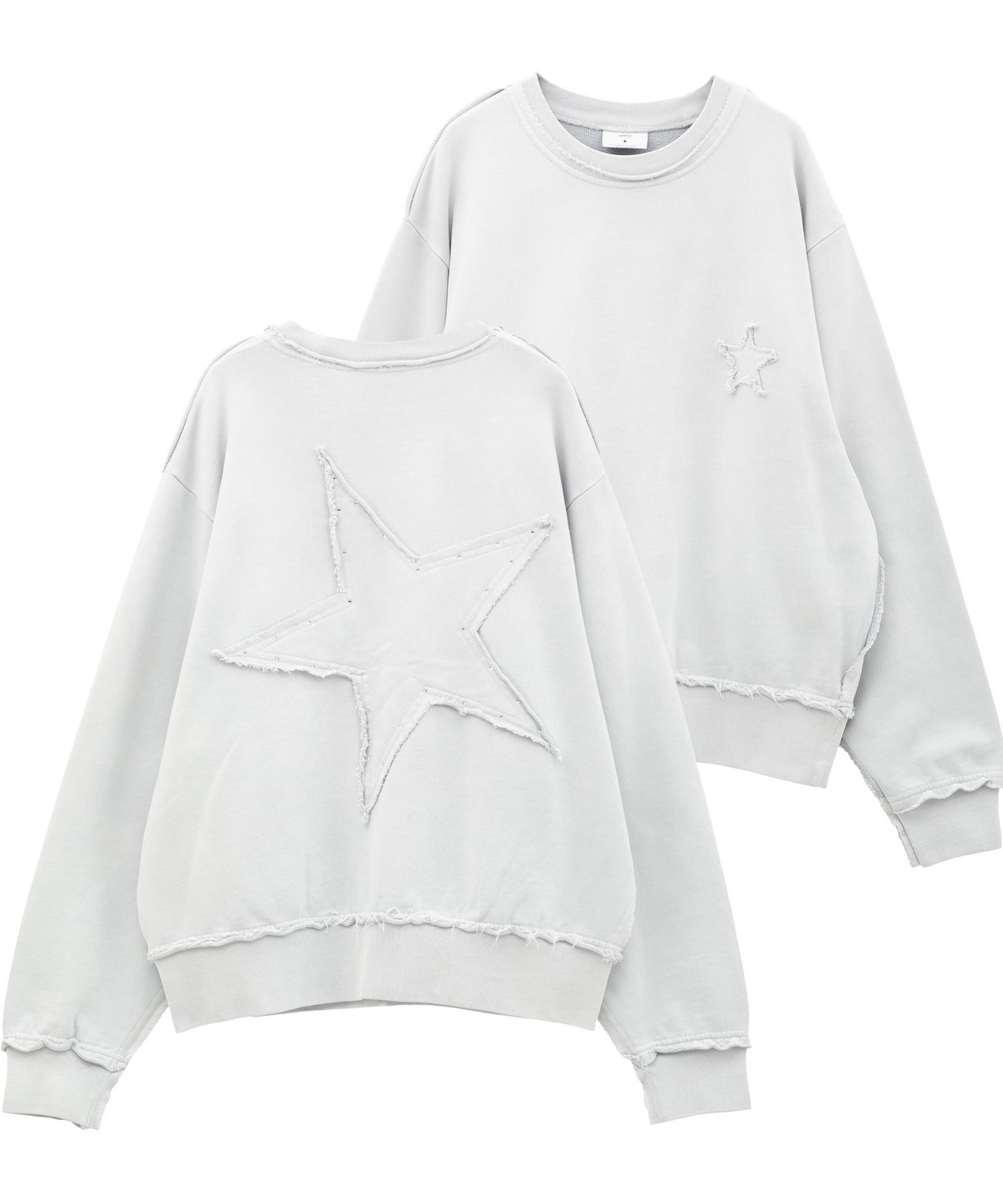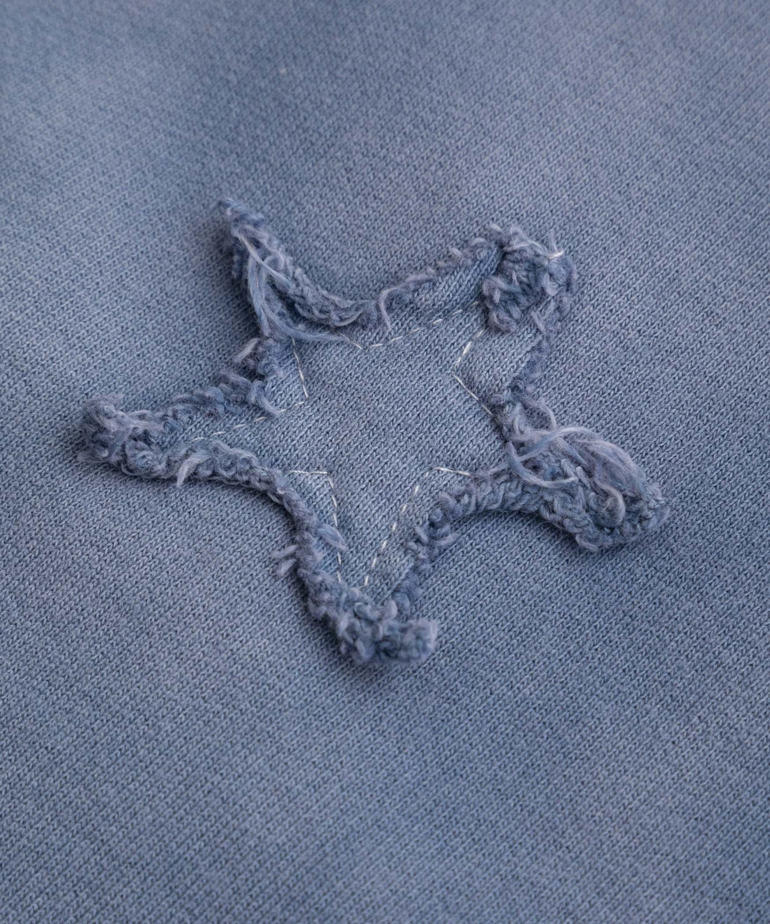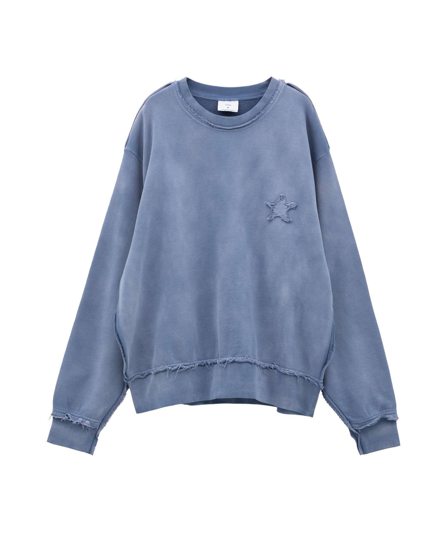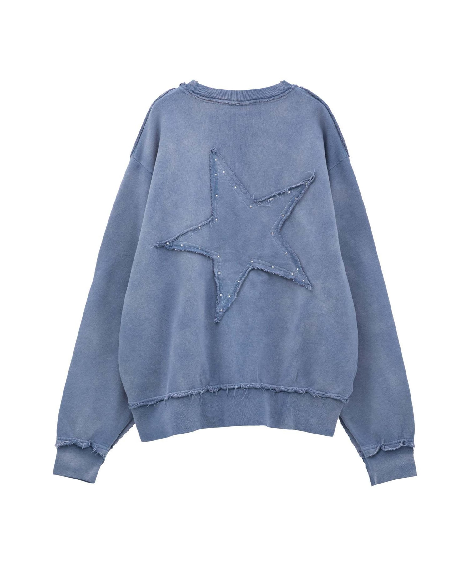 背面に大きく施された星のパッチワークが存在感を放つスウェットプルオーバー。