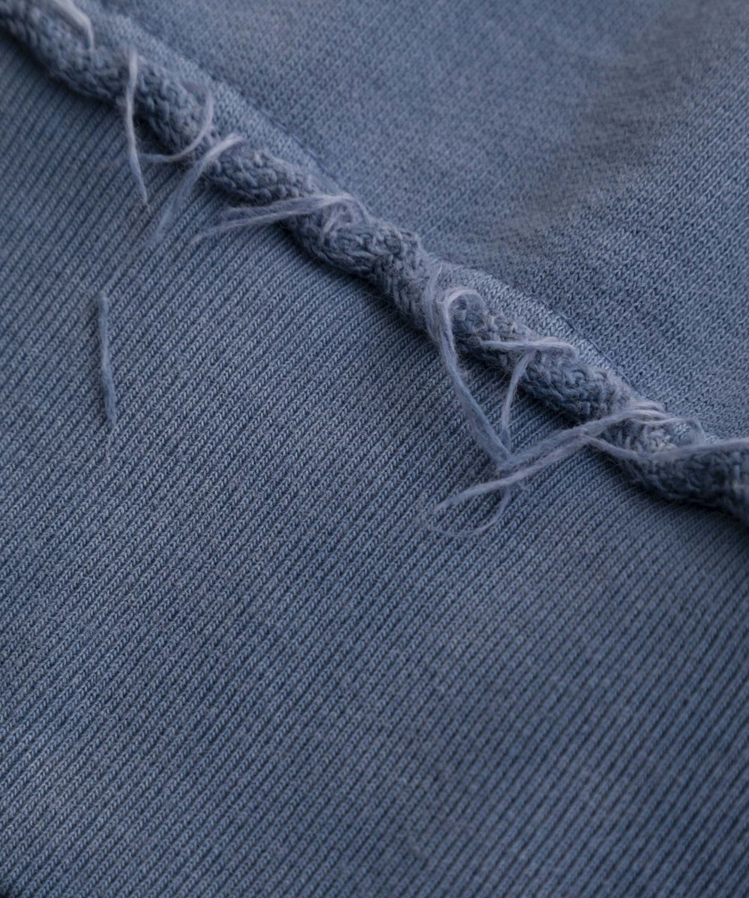 首元や裾、袖口のリブ部分にはダメージ加工を施し、長年着込んだようなこなれ感を演出。