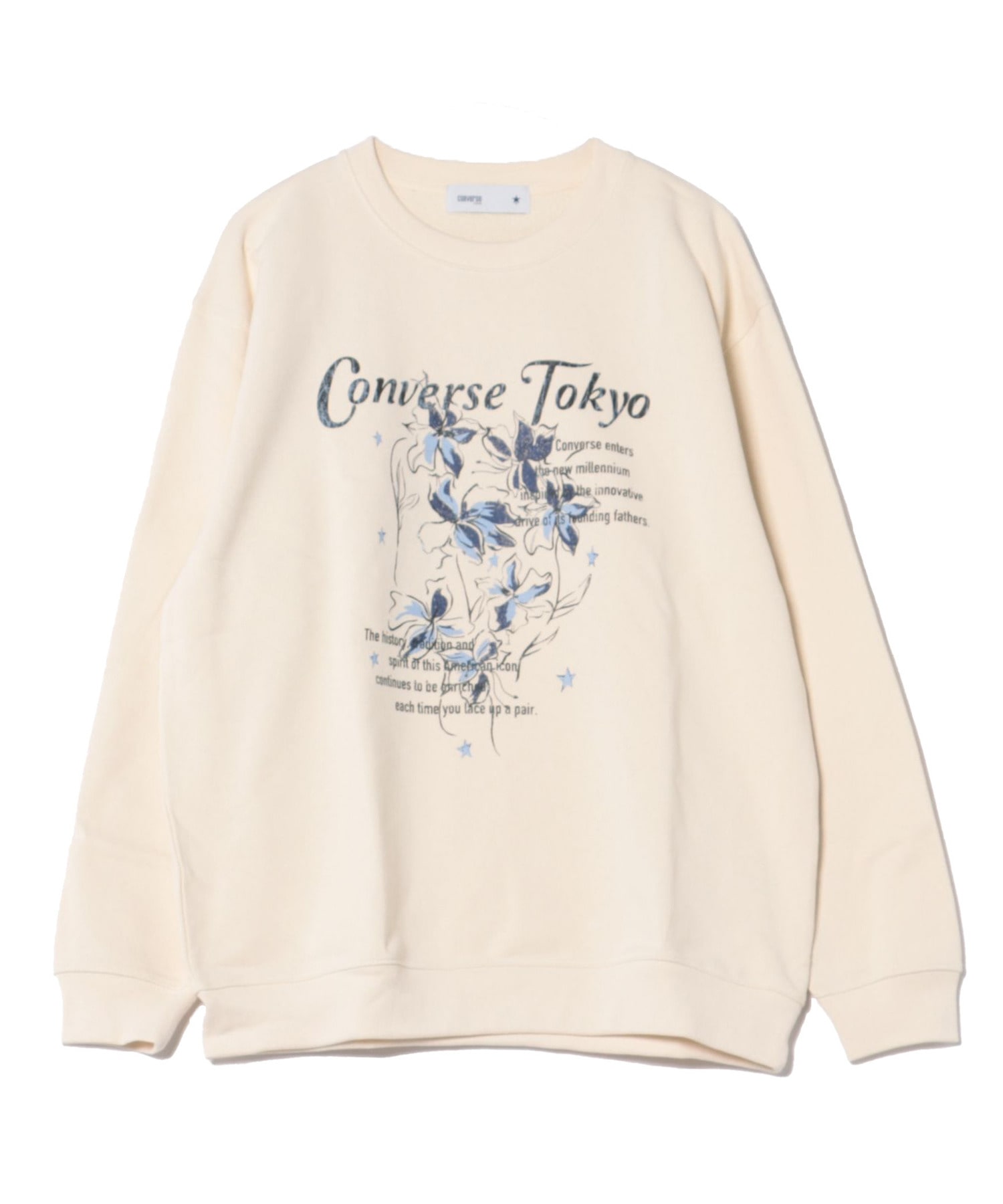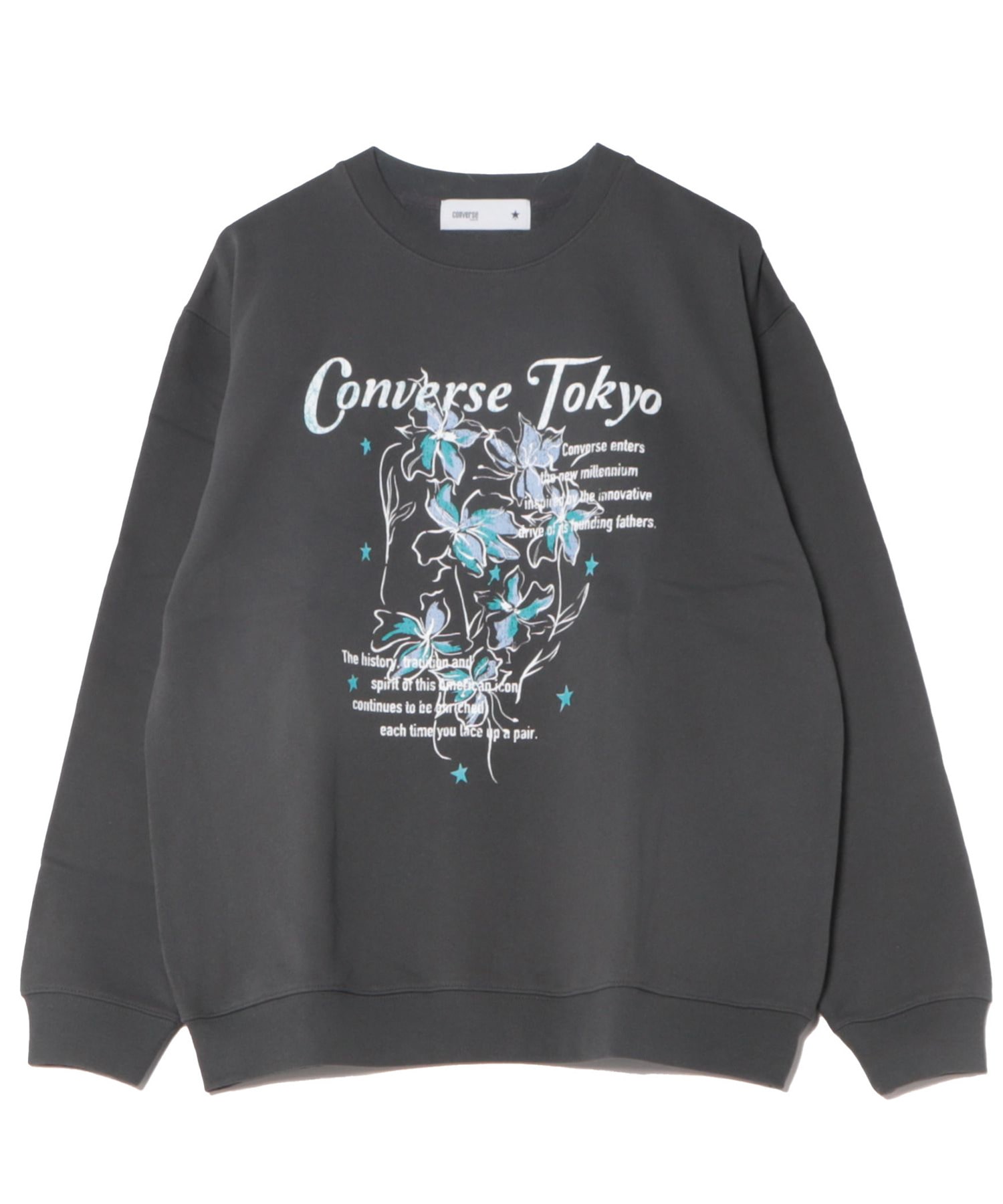 フロントに鮮やかなフラワーグラフィックとブランドロゴを配したスウェットプルオーバー。