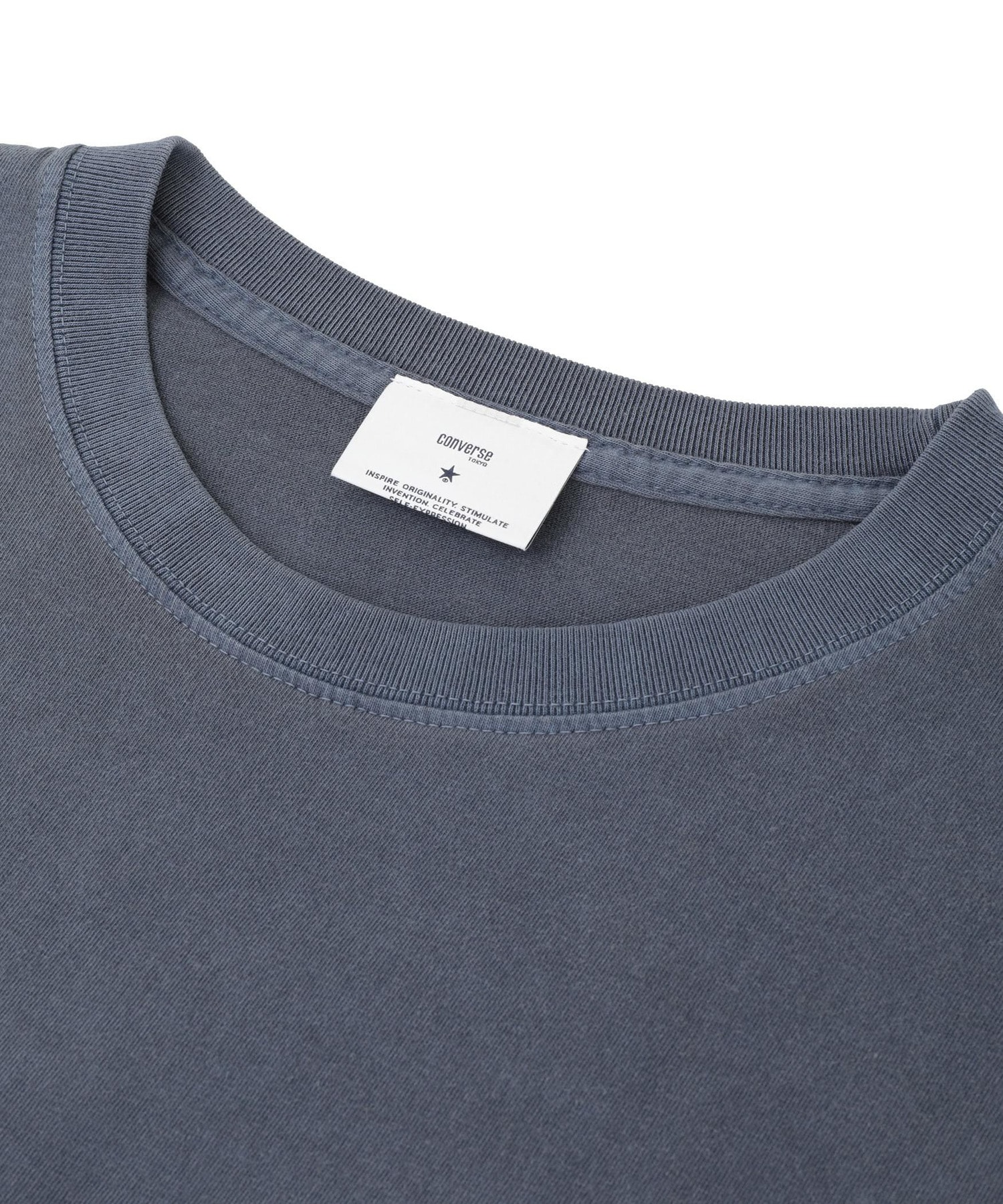 製品染めによる自然な色落ちと、背面に大胆にあしらった星パッチが目を惹くロングスリーブTシャツ。