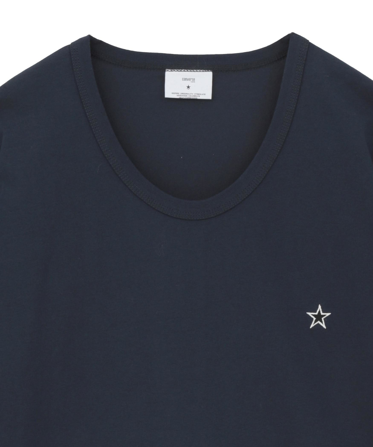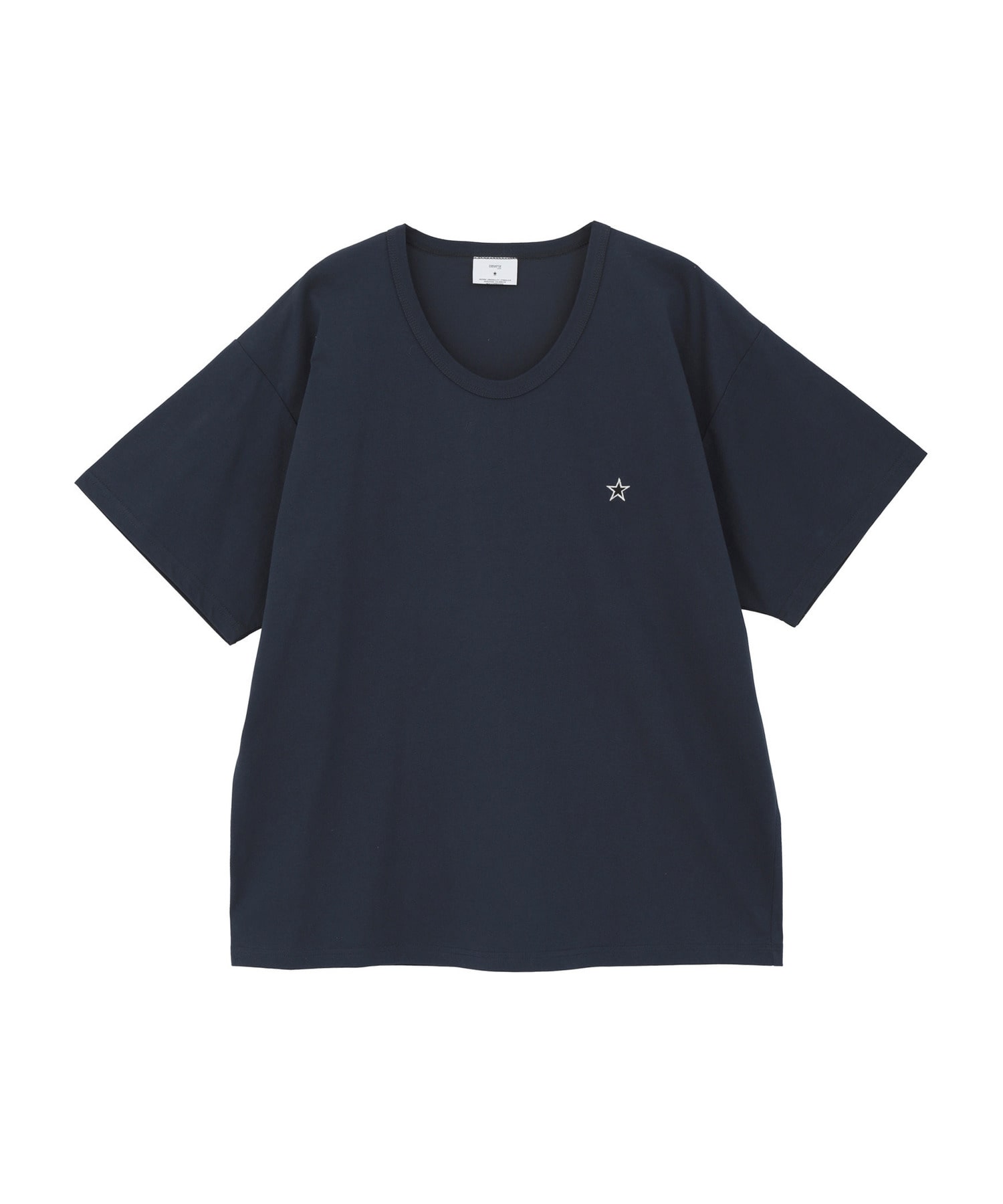胸元にはさりげない星ワッペンをあしらい、バックネック部分にはブランドロゴをプリント。