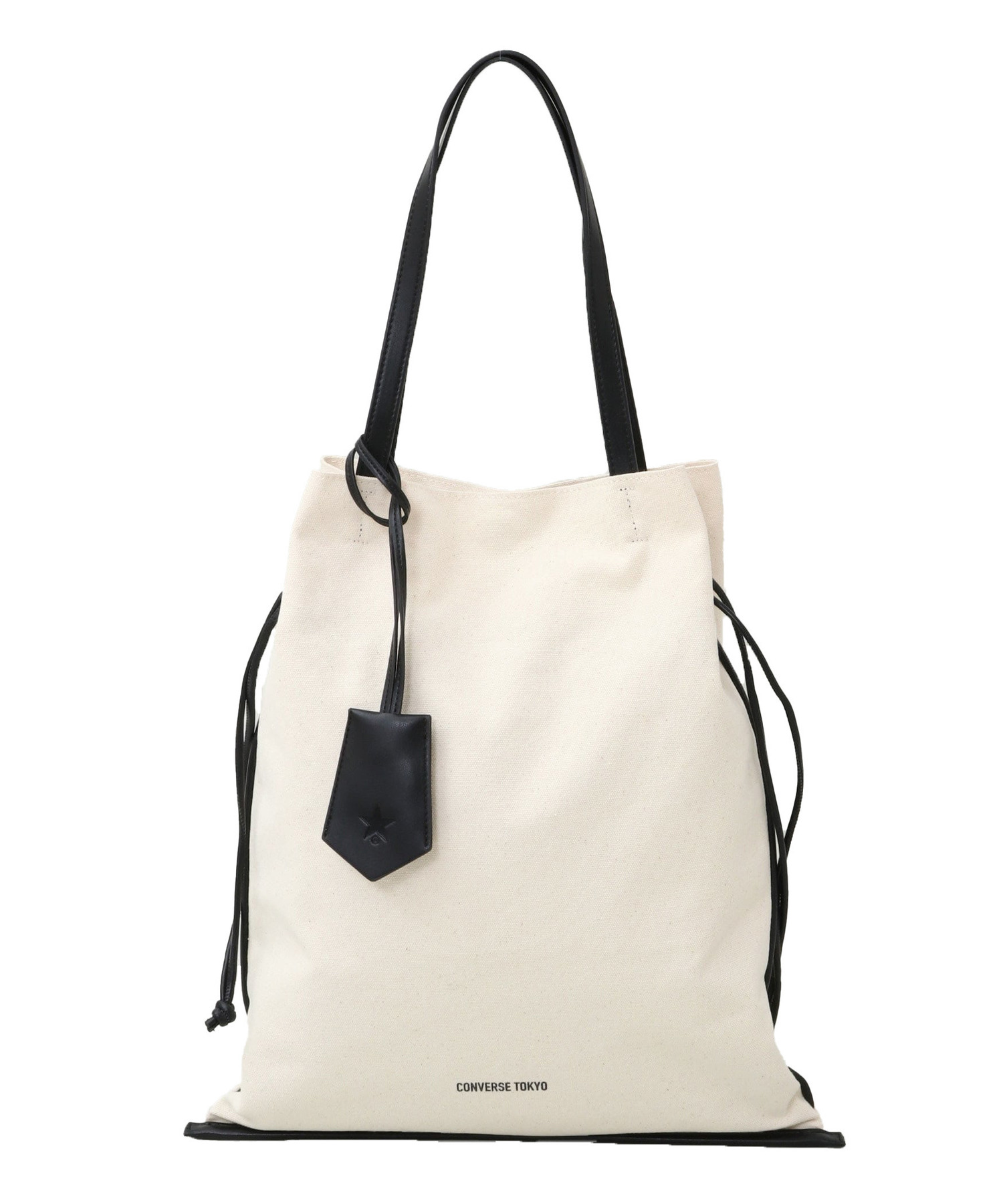 キャンバスベースにヴィーガンレザーを縁取ったトートバッグ。