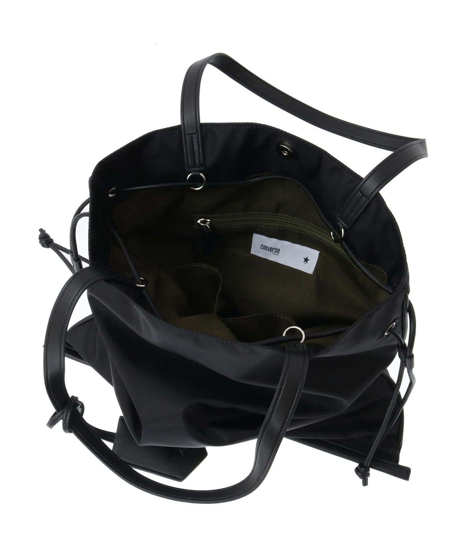 すとんと落ちるシンプルなシルエットと、口元のコードを絞った巾着シルエットが楽しめる2WAY仕様。