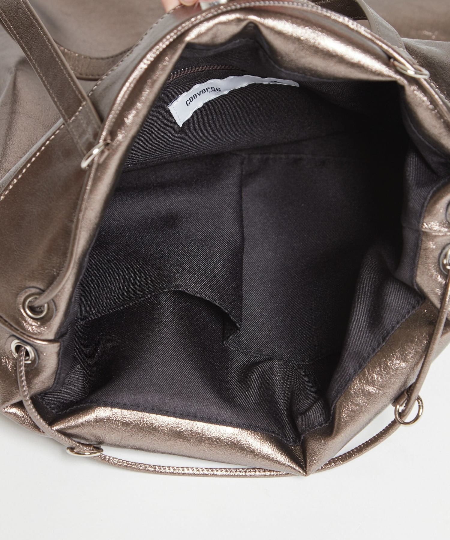 メタリック素材ながら、全体にクラッシュ加工を施すことで落ち着きのあるカラーに仕上げたアイテム。