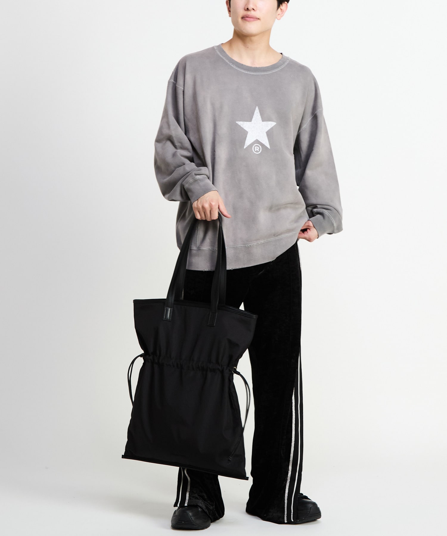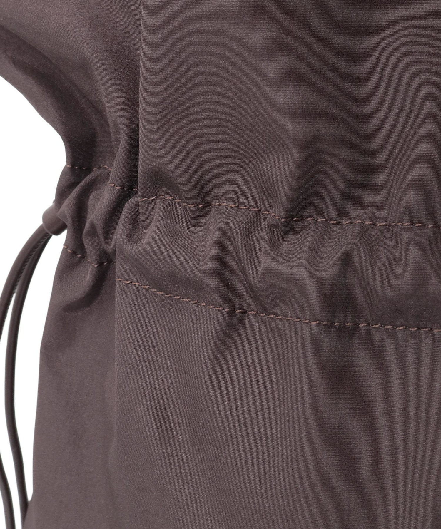 すとんと落ちるシンプルなシルエットと、中央のコードを絞った巾着シルエットが楽しめる2WAY仕様。