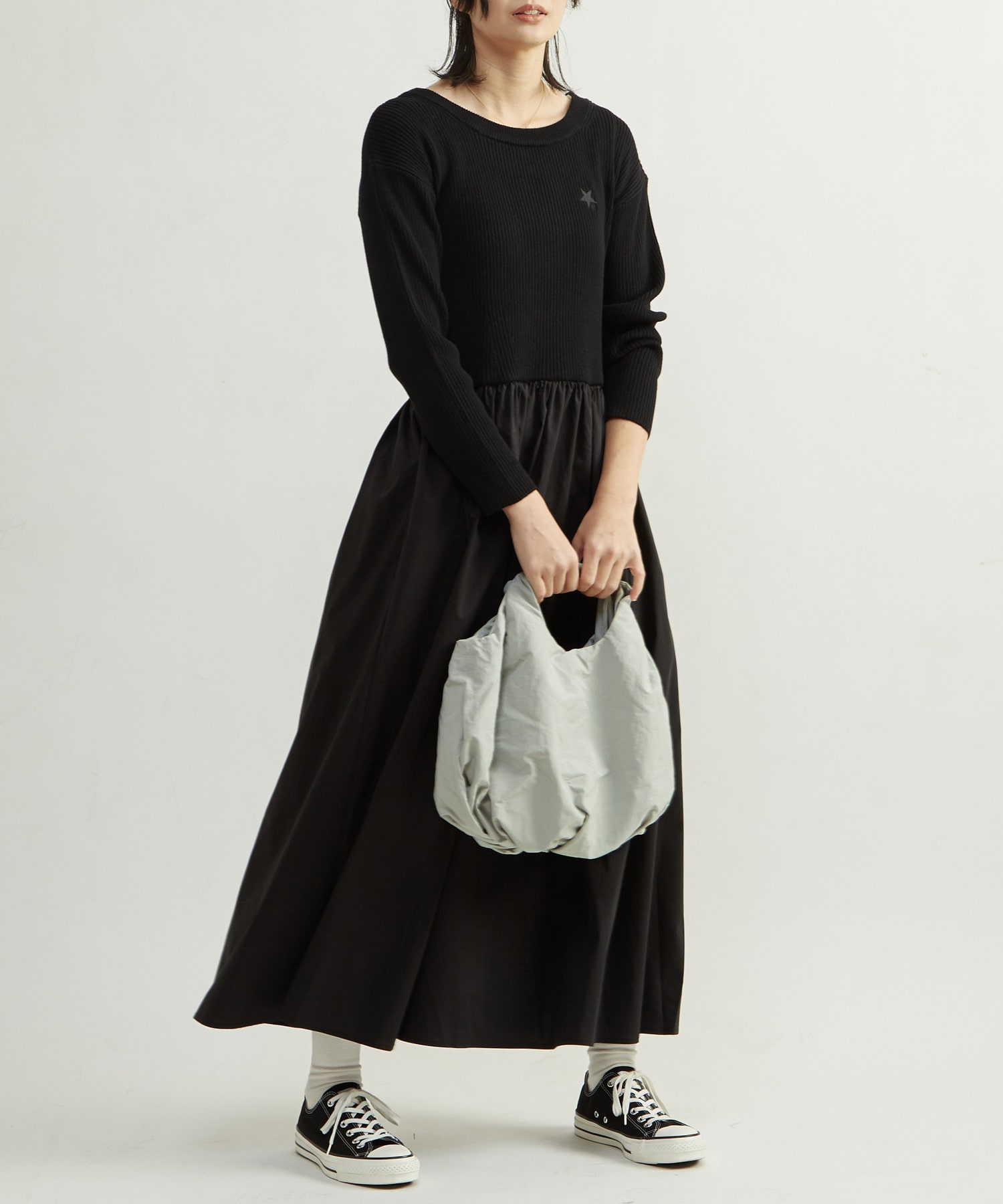 マットなナイロン素材を採用し、カジュアルすぎず上品な印象に。