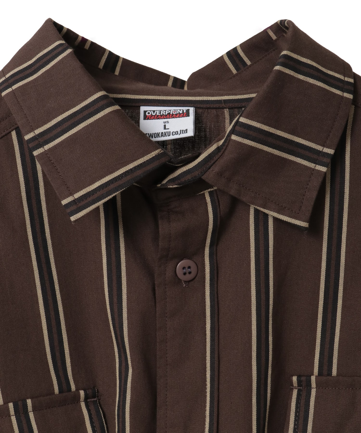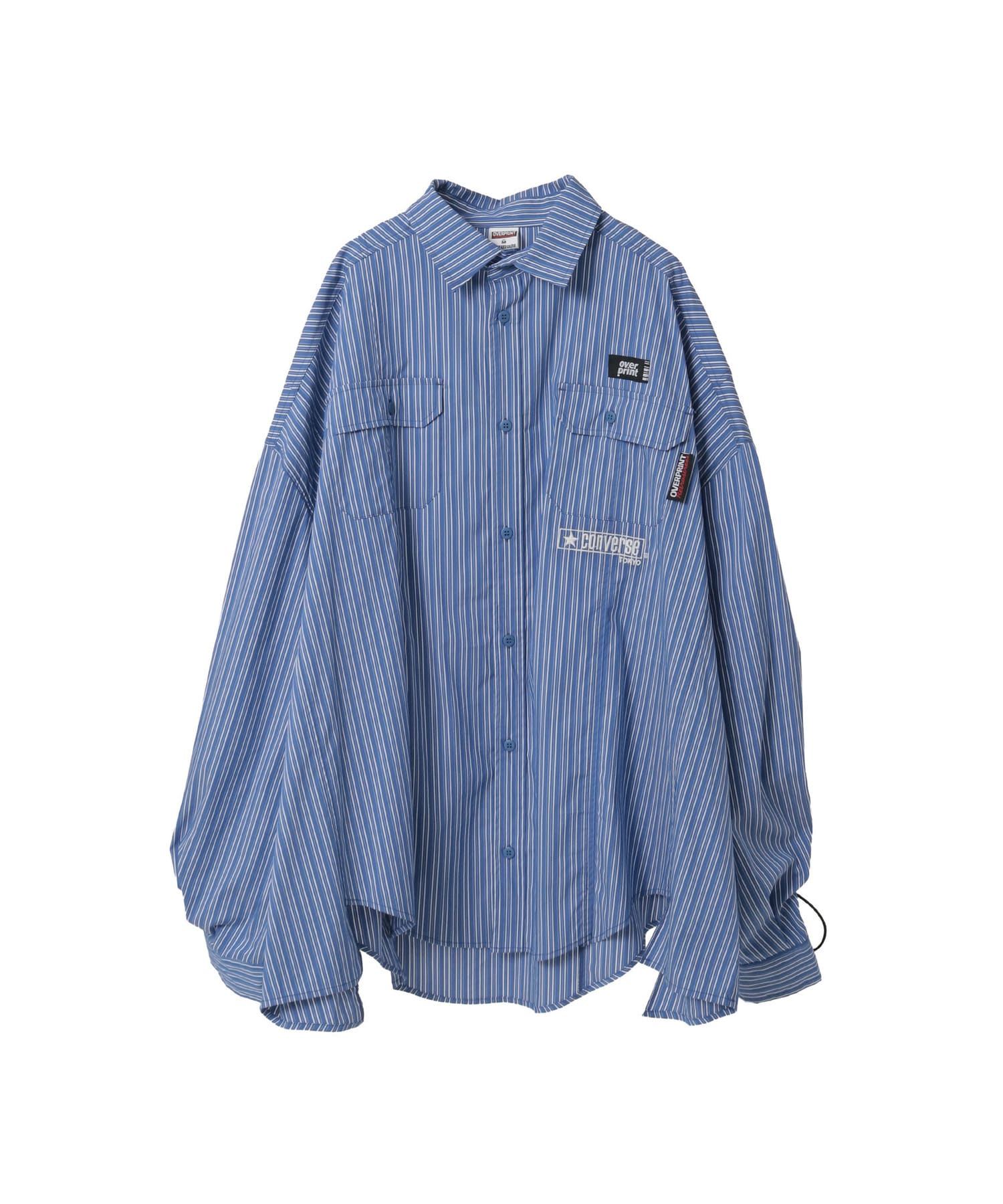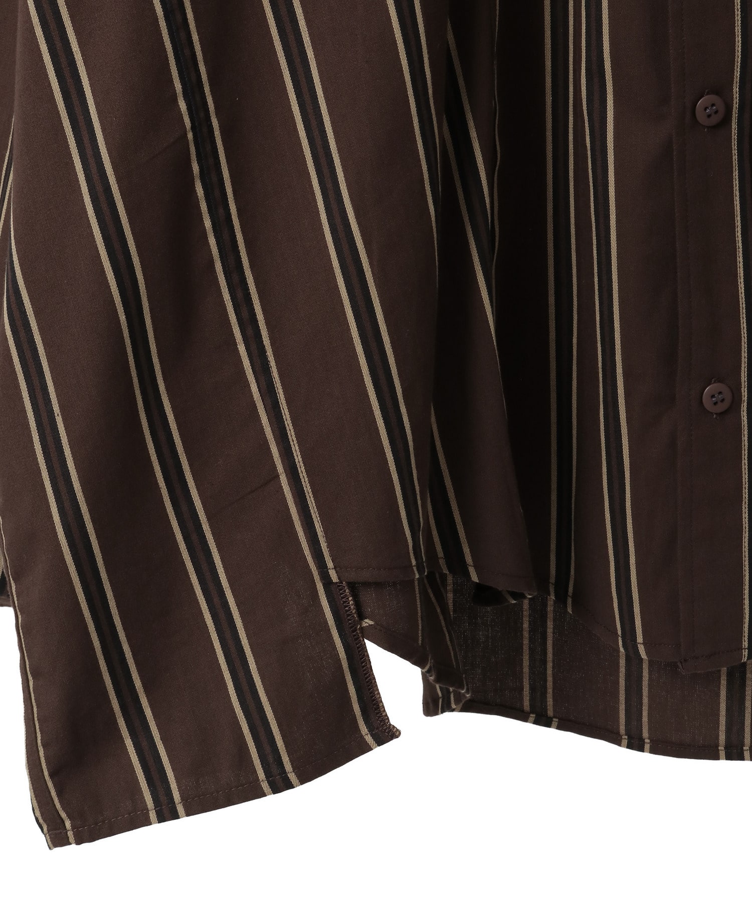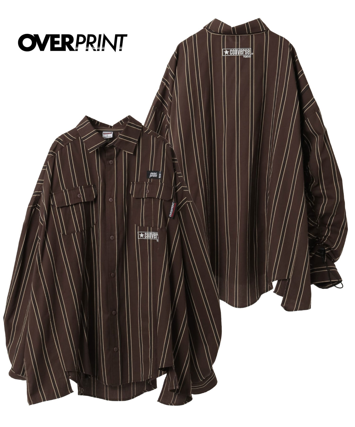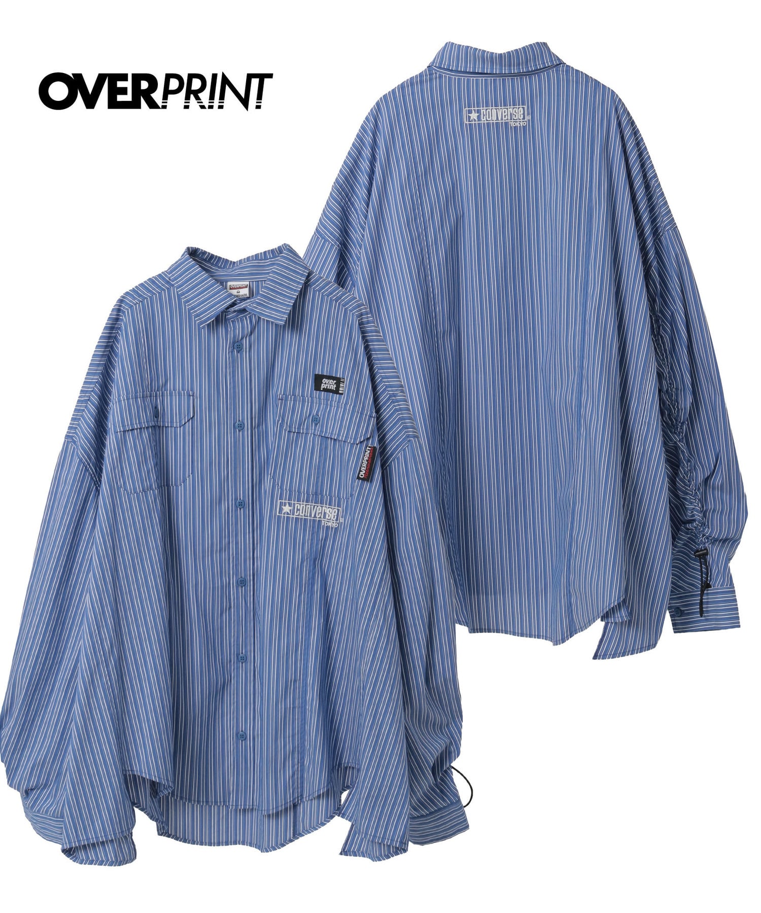 overprintの2枚のシャツを一つに繋ぎ合わせたようなワイドシルエットシャツ