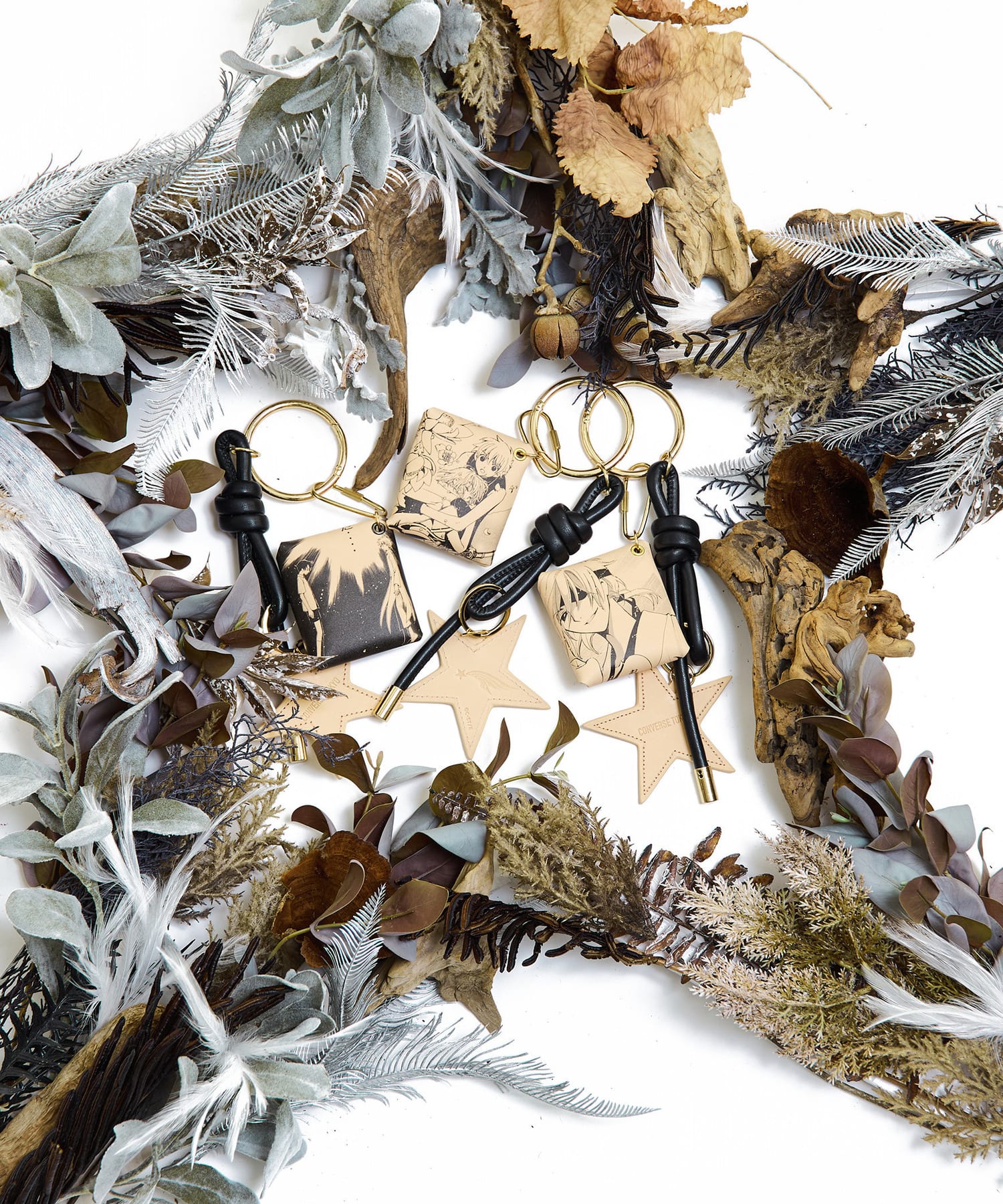 星チャームの表面にはCONVERSE TOKYOのロゴ、裏面には『ツバサ-RESERVoir CHRoNiCLE-』のタイトルロゴにもはためく“羽根”に星のモチーフを掛け合わせた、スペシャルなアイコンを施しています。