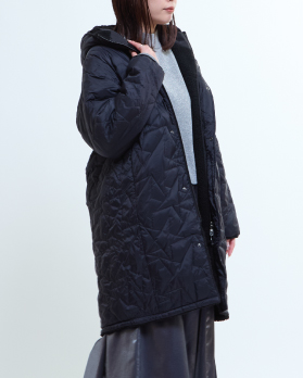 表は星モチーフのオリジナルキルティング、裏はボアを採用したリバーシブル仕様のダウンコート。