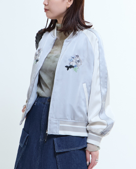 華やかな刺繍が目を惹く、ショート丈仕様のスカジャン。